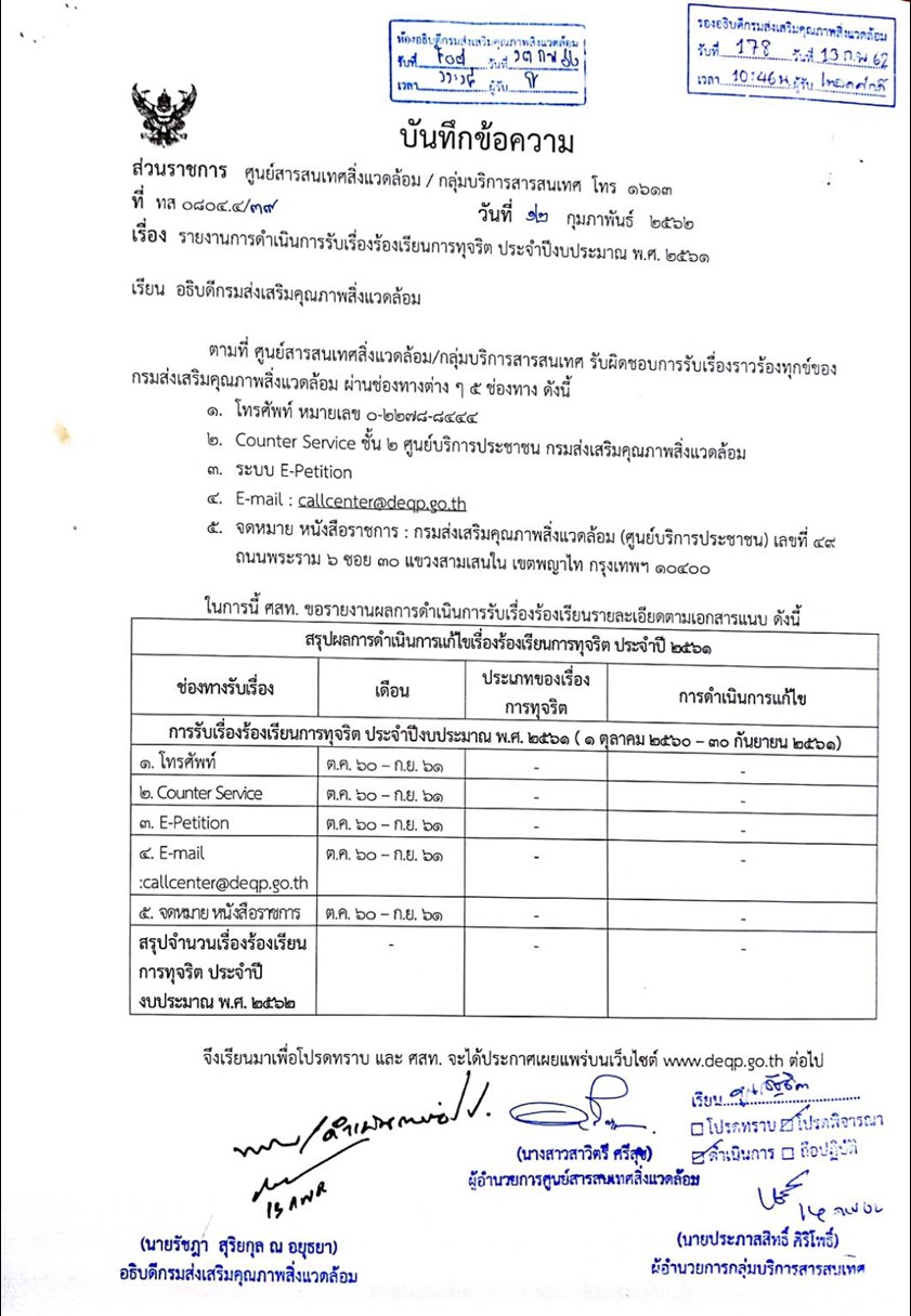 หน้าหลัก >> Knowledge >> ศูนย์บริการประชาชน >> จำนวนผู้เข้าชม: 1,203 รายงานการดำเนินการรับเรื่องร้องเรียนการทุจริต
