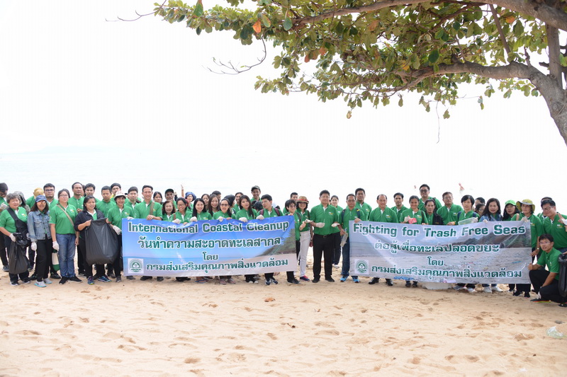 กระทรวงทรัพยากรธรรมชาติและสิ่งแวดล้อม โดยกรมส่งเสริมคุณภาพสิ่งแวดล้อม จัดกิจกรรมเก็บขยะชายหาด เนื่องในวันทำความสะอาดทะเลสากล International Coastal Cleanup ภายใต้แนวคิด “ต่อสู้เพื่อทะเลปลอดขยะ” Fighting For Trash Free Seas ในวันที่ 21 กันยายน 2562 ณ ชายหาดจอมเทียน พัทยา จ.ชลบุรี โดยมี นายรัชฎา สุริยกุล ณ อยุธยา อธิบดีกรมส่งเสริมคุณภาพสิ่งแวดล้อม พร้อมด้วย นายสุรชัย อจลบุญ รองอธิบดีกรมส่งเสริมคุณภาพสิ่งแวดล้อม และนางสาวสาวิตรี ศรีสุข รองอธิบดีกรมส่งเสริมคุณภาพสิ่งแวดล้อม นำคณะข้าราชการ และเจ้าหน้าที่กรมส่งเสริมคุณภาพสิ่งแวดล้อม จำนวนกว่า 400 คน ร่วมกิจกรรม