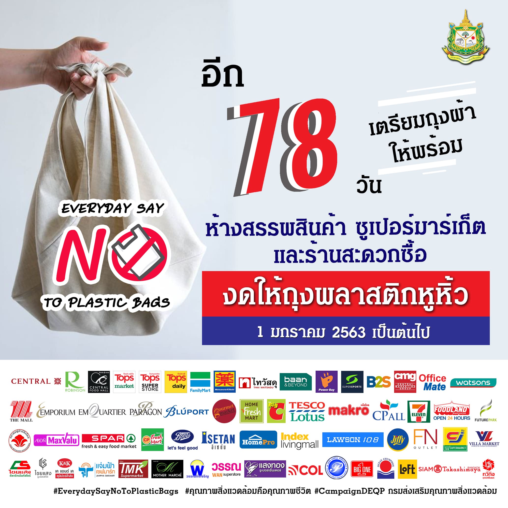 อีก 78 วัน เตรียมถุงผ้าให้พร้อม ห้างสรรพสินค้า ซูเปอร์มาร์เก็ต และร้านสะดวกซื้อ งดให้ถุงพลาสติกหูหิ้ว