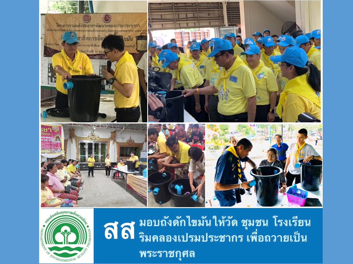 กระทรวงทรัพยากรธรรมชาติและสิ่งแวดล้อม โดย กรมส่งเสริมคุณภาพสิ่งแวดล้อม ดำเนินการและมอบถังไขมันให้กับ