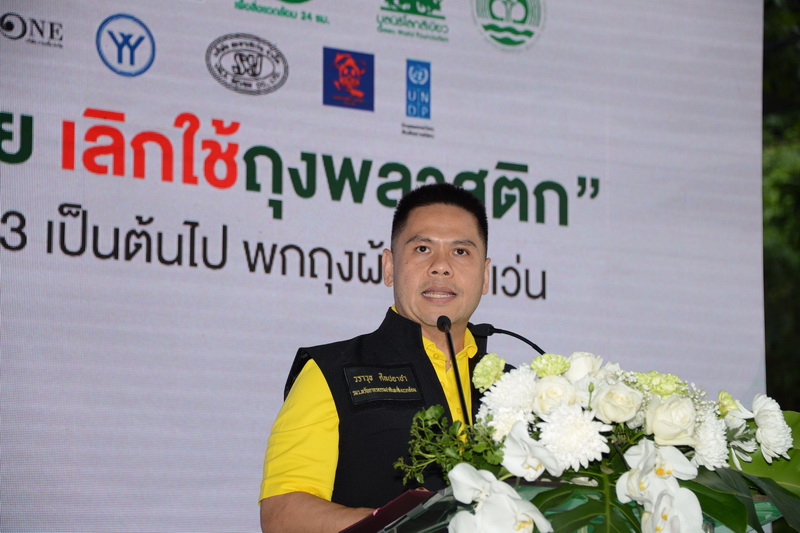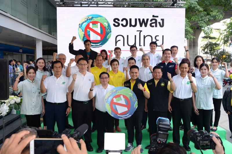 วันศุกร์ที่ 8 พ.ย. 2562 นายวราวุธ ศิลปอาชา รัฐมนตรีว่าการกระทรวงทรัพยากรธรรมชาติและสิ่งแวดล้อม (ทส.) นายจตุพร บุรุษพัฒน์ ปลัดกระทรวงทรัพยากรธรรมชาติและสิ่งแวดล้อม นายรัชฎา สุริยกุล ณ อยุธยา อธิบดีกรมส่งเสริมคุณภาพสิ่งแวดล้อม (สส.) พร้อมด้วยคณะผู้บริหารกระทรวงทรัพยากรธรรมชาติและสิ่งแวดล้อม และคณะผู้บริหาร บริษัท ซีพี ออลล์ จำกัด (มหาชน) ร่วมประกาศเจตนารมณ์ “รวมพลังคนไทย เลิกใช้ถุงพลาสติก 1 มกราคม 2563” ณ ลานด้านหน้าอาคารยูไนเต็ด เซ็นเตอร์ ถ.สีลม เผย เกือบ 1 ปี ลดขยะถุงพลาสติกได้กว่า 830 ล้านใบ ยอดเงินบริจาคสะสม 166 ล้านบาท พร้อมเดินรณรงค์แจกถุงผ้า เชิญชวนประชาชนย่านซอยละลายทรัพย์ ร่วมทำความดีด้วยหัวใจ ลดรับ ลดให้ ลดใช้ถุงพลาสติก