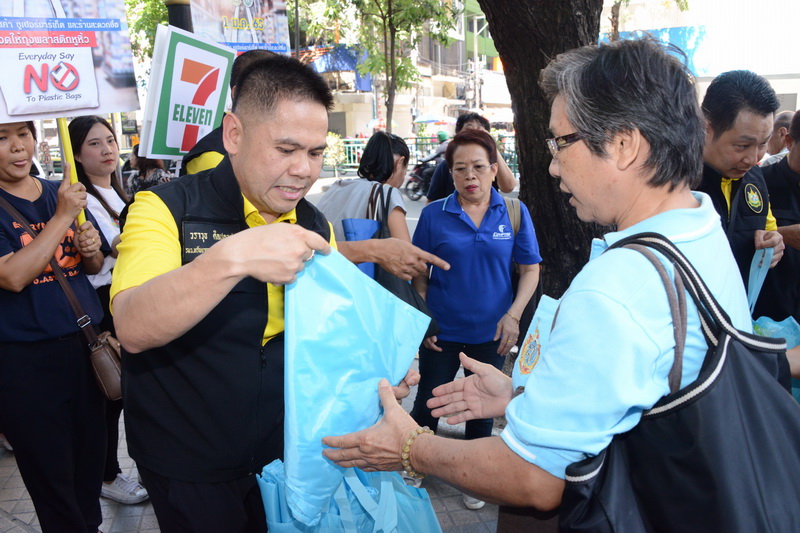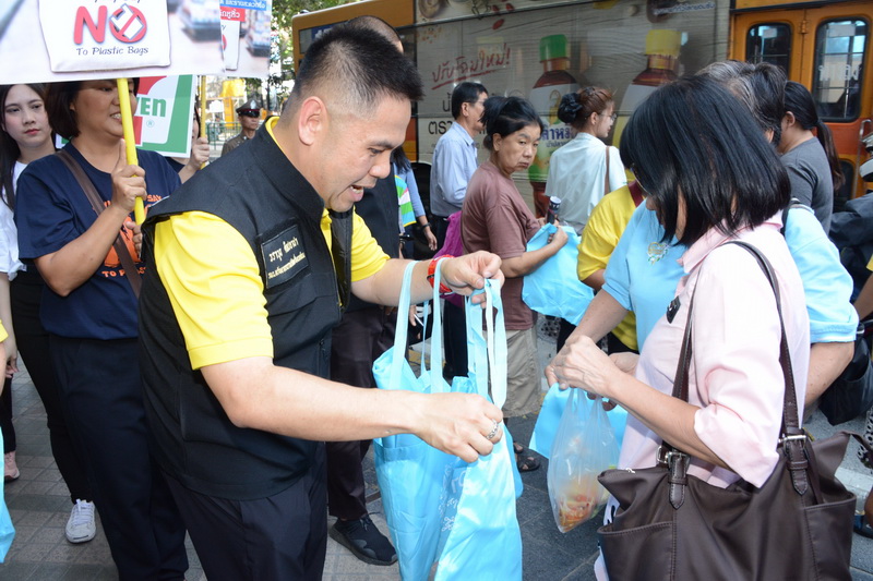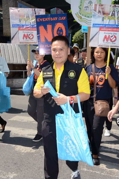 ด้าน นายรัชฎา สุริยกุล ณ อยุธยา อธิบดีกรมส่งเสริมคุณภาพสิ่งแวดล้อม กล่าวว่า จากการสร้างความร่วมมือกับภาคธุรกิจเอกชน ห้างสรรพสินค้า ร้านสะดวกซื้อ และตลาดสดทั่วประเทศ นับตั้งแต่วันที่ 21 ก.ค.ปีที่ผ่านมา สามารถลดปริมาณการใช้ถุงพลาสติกหูหิ้ว ได้มากกว่า 2,000 ล้านใบ หรือประมาณ 5,755 ตัน และในวันนี้ ยังได้มีการเดินรณรงค์มอบ ถุงผ้า เชิญชวนประชาชนและนักท่องเที่ยว ย่านสีลม ที่ซอยสุรเสนา สีลมซอย 5 หรือที่รู้จักกันดีในชื่อ “ซอยละลายทรัพย์” หรือ “วอลล์สตรีตของกรุงเทพฯ” ร่วมกัน “ทำความดีด้วยหัวใจ ลดรับ ลดให้ ลดใช้ ถุงพลาสติก” เนื่องจากที่นี่เป็นแหล่งค้าขายและช้อปปิ้งที่ดึงดูดคนไทยและนักท่องเที่ยวต่างประเทศจำนวนมากตลอดทั้งปี และจะรณรงค์เช่นนี้อย่างต่อเนื่องทั้งในห้างสรรพสินค้า ร้านสะดวกซื้อ และตลาดสด จนกว่าจะถึงวันดีเดย์ งดแจกถุงพลาสติกหูหิ้วทั่วประเทศ 1 มกราคม ปีหน้า