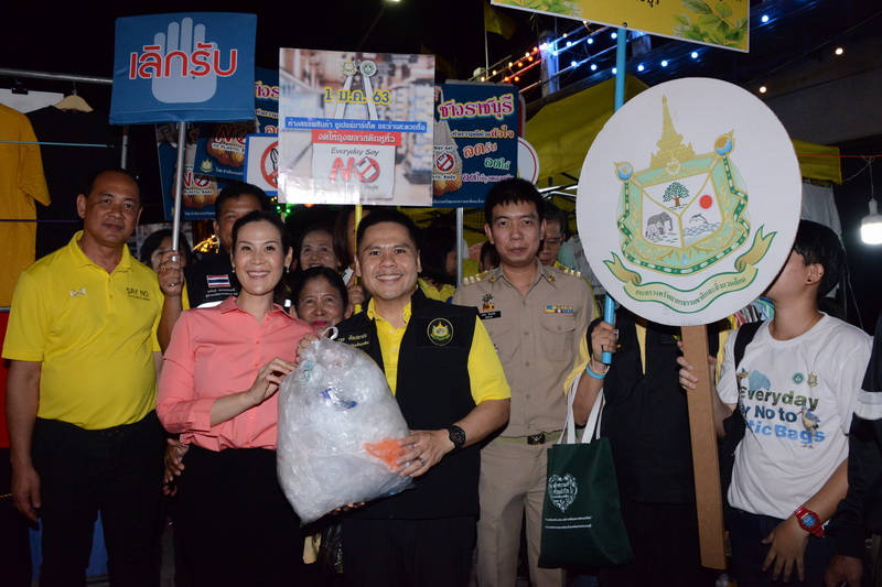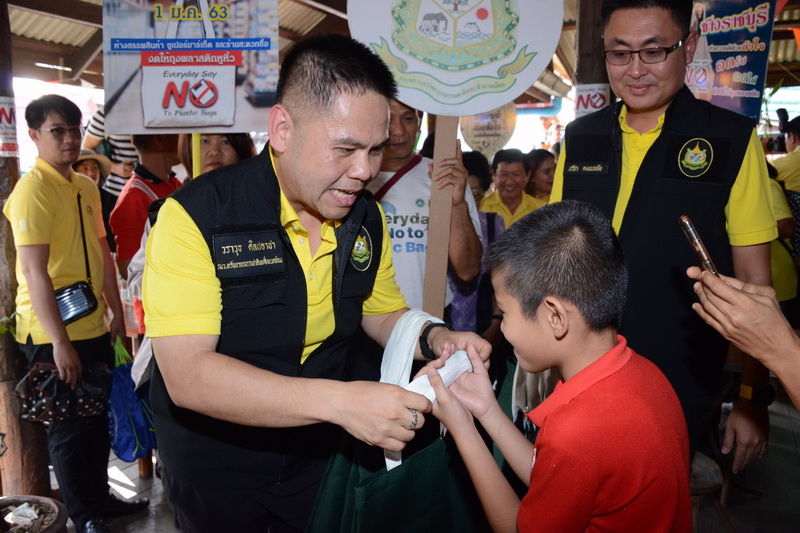 โดยช่วงเช้าของวันที่ 10 พ.ย. รมว.ทส. พร้อมคณะ ได้รณรงค์แจกถุงผ้าให้กับพี่น้องประชาชนที่ตลาดสดเทศบาลอู่ทอง จ. สุพรรณบุรี และช่วงบ่าย ที่ตลาดน้ำเหล่าตั๊กลัก ตลาดน้ำดั้งเดิมแห่งแรกของจังหวัดราชบุรี และเป็นตลาดน้ำแห่งแรกในประเทศไทย ที่มีอายุเก่าแก่มากกว่า 150 ปี รองรับนักท่องเที่ยวในวันธรรมดา ประมาณ 500 คน วันเสาร์-อาทิตย์ ประมาณ 1,000 คน มีปริมาณขยะ ประมาณ 4 พันลิตร ต่อวัน ซึ่ง ตลาดชุมชน ถือเป็นกลุ่มเป้าหมายใหญ่ และเป็นแหล่งที่มาหลักของขยะพลาสติกประเภทใช้ครั้งเดียวทิ้ง ไม่ว่าจะเป็นถุงพลาสติกหูหิ้ว แก้วพลาสติก หลอดพลาสติก กล่องโฟม เป็นต้น โดยเฉพาะขยะถุงพลาสติกหูหิ้ว พบว่ามีที่มาจากตลาดสด มากกว่าปีละ 18,000 ล้านใบ กำจัดและใช้เวลาในการย่อยสลายยาวนาน ถึง 450 ปี ส่งผลกระทบต่อสิ่งแวดล้อมและมีส่วนสำคัญในการก่อมลพิษพลาสติกในทะเล และ ในวันที่ 11 พ.ย. จะเดินทางไปยัง จ.กาญจนบุรี รณรงค์ร่วมกับร้านค้า บริเวณอุทยานแห่งชาติเอราวัณ เนื่องจาก อุทยานแห่งชาติของไทย จะพบขยะ มากกว่า 1 พันตันในทุกปี แม้ว่า ในรอบปีที่ผ่านมา จะสามารถลดปริมาณขยะพลาสติกใช้ครั้งเดียวทิ้ง ได้มากกว่า 4 ล้านใบ แล้วก็ตาม แต่ยังคงต้องรณรงค์อย่างต่อเนื่อง เพื่อร่วมกันสู่จุดหมาย ประเทศไทยปลอดพลาสติกใข้ครั้งเดียวทิ้ง ภายในปี 2564