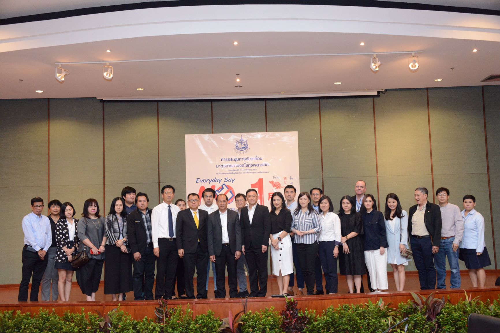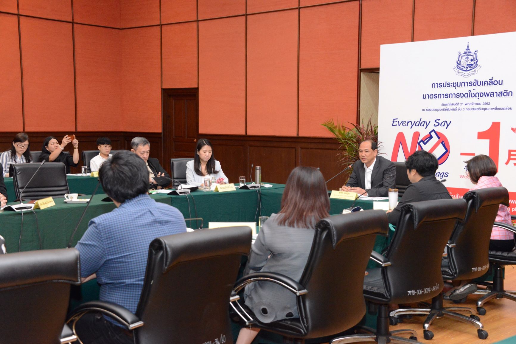 นายวราวุธ ศิลปอาชา รัฐมนตรีว่าการกระทรวงทรัพยากรธรรมชาติและสิ่งแวดล้อมได้มอบหมายกรมส่งเสริมคุณภาพสิ่งแวดล้อมเร่งขับเคลื่อนมาตรการงดให้ถุงพลาสติก ตั้งแต่วันที่ 1 มกราคม 2563 ตามมติคณะรัฐมนตรี เมื่อวันที่ 12 พ.ย. ที่ผ่านมา เพื่อให้เป็นนโยบายความร่วมมือระหว่างภาครัฐและเอกชนในการดำเนินงานเพื่อลดและเลิกใช้พลาสติกแบบใช้ครั้งเดียว (Single – Use Plastic) ที่ก่อให้เกิดผลกระทบต่อสิ่งแวดล้อมภายใต้ Roadmap การจัดการขยะพลาสติก พ.ศ. 2561 – 2573 โดย เมื่อช่วงบ่ายวันที่ 21 พ.ย. กรมส่งเสริมคุณภาพสิ่งแวดล้อม จึงได้จัดประชุมหารือร่วมกับภาคีเครือข่าย ที่ล่าสุด มีจำนวนทั้งสิ้น 50 แห่ง ที่ประกาศพร้อมงดให้บริการถุงพลาสติกหูหิ้วกับลูกค้า โดยเฉพาะถุงพลาสติกหูหิ้วแบบบาง (ความหนาน้อยกว่า 36 ไมครอน) เพื่อร่วมกันกำหนดแนวทาง วิธีการปฏิบัติที่ชัดเจน ในการรองรับสถานการณ์ เมื่อถึงวันที่ 1 มกราคม 2563 เป็นต้นไป โดยมี นายสุรชัย อจลบุญ ผู้ตรวจราชการกระทรวงทรัพยากรธรรมชาติและสิ่งแวดล้อม เป็นประธาน
