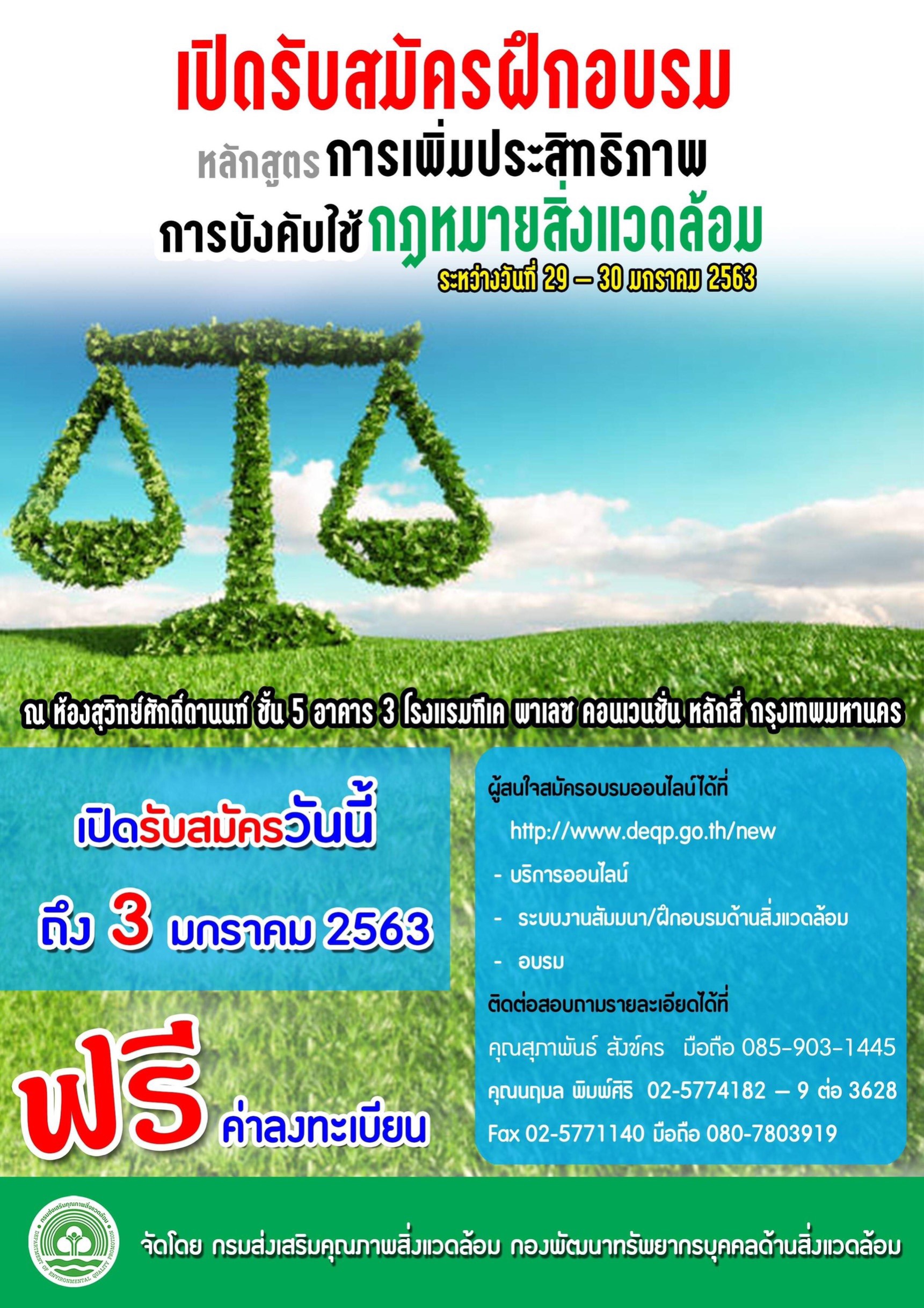เปิดรับสมัครฝึกอบรม หลักสูตร การเพิ่มประสิทธิภาพการบังคับใช้กฎหมายสิ่งแวดล้อม ระหว่างวันที่ 29-30 มกราคม 2563