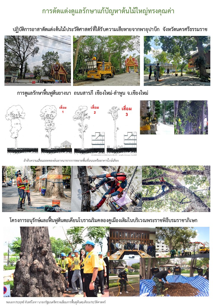 จากการสำรวจอย่างเป็นระบบ ทั้งหมด 217 ต้น ที่ จ.เชียงใหม่ นครศรีธรรมราช และกรุงเทพมหานคร ที่จะเป็นต้นแบบในการบริหารจัดการอย่างมีประสิทธิภาพต่อไป และจะมีการสำรวจเก็บข้อมูลอย่างต่อเนื่องในปีต่อๆไป - ต้นไม้โบราณริมคลองคูเมืองเดิม ในบริเวณพระราชพิธีบรมราชาภิเษก สมเด็จพระเจ้าอยู่หัวมหาวชิราลงกรณ บดินทรเทพยวรางกูร จำนวน 110 ต้น -ต้นไม้ทรงคุณค่าที่ได้รับความเสียหายจากพายุปาบึก ณ จังหวัดนครศรีธรรมราช ได้รับการสำรวจและประเมินสุขภาพจำนวน 7 ต้น -ต้นยางนาประวัติศาสตร์ที่ถนนเชียงใหม่-ลำพูน ซึ่งเป็นพื้นที่คุ้มครองสิ่งแวดล้อมที่ประกาศโดยกระทรวงทรัพยากรธรรมชาติและสิ่งแวดล้อม จำนวน 100 ต้น