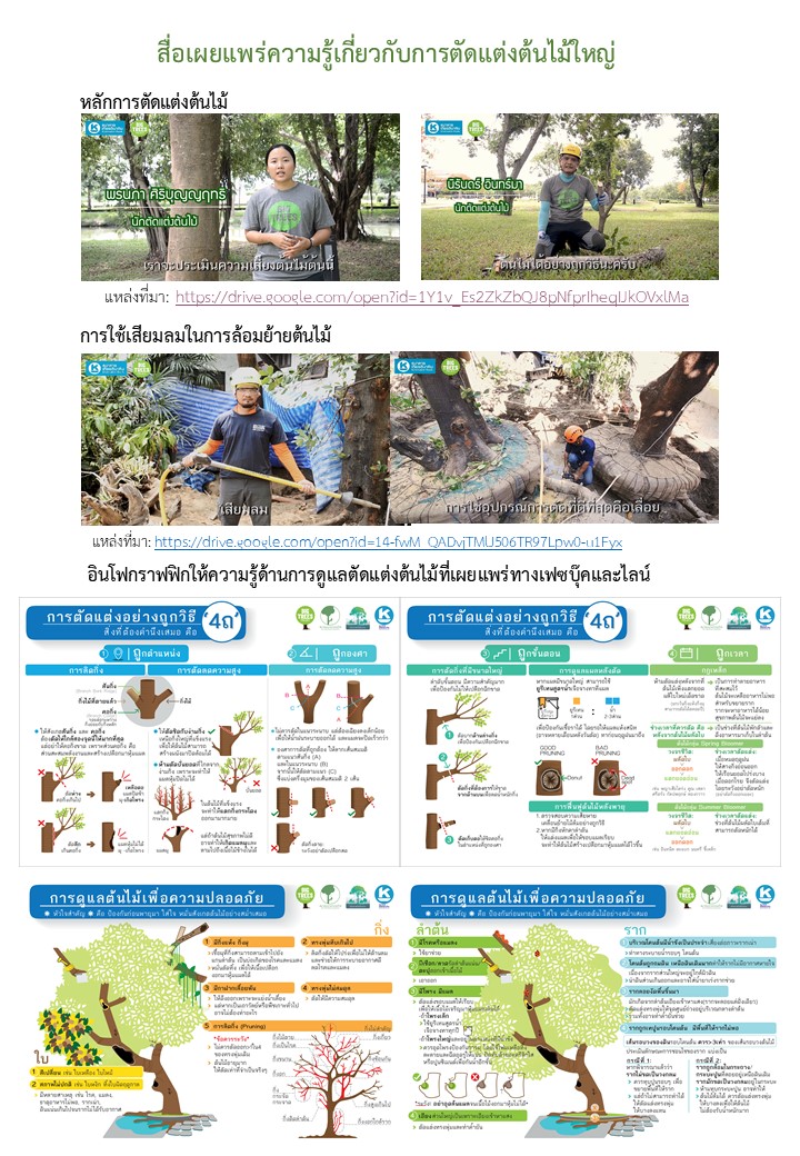จัดทำสื่อทั้งคลิปวิดีโอ อินโฟกราฟิก สื่อออนไลน์ต่างๆ เพื่อเผยแพร่ความรู้ด้านการดูแลรักษาต้นไม้ตามหลักรุกขกรรม ให้เห็นความสำคัญของต้นไม้