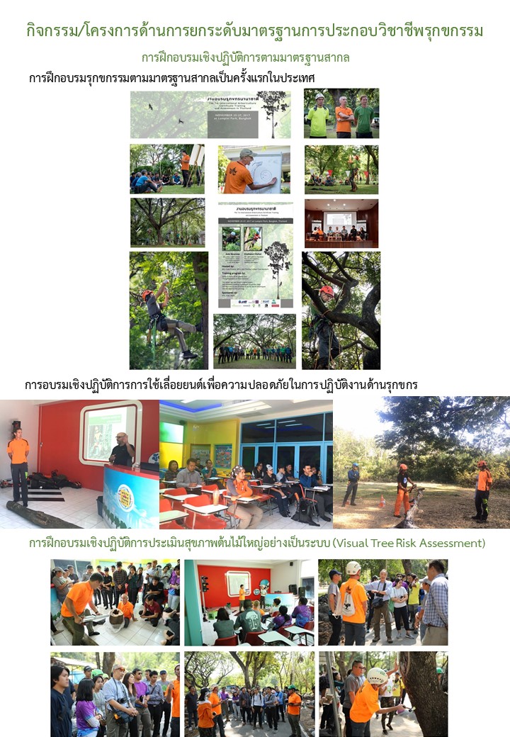 ประเทศไทยมีความจำเป็นที่จะต้องมีการฝึกอบรมบุคลากรด้านรุกขกรรมขั้นพื้นฐานที่ได้มาตรฐานสากลเป็นจำนวนมาก จึงจำเป็นต้องมีการจัดฝึกอบรมผู้สอน (Trainers) ที่ได้มาตรฐานเป็นที่ยอมรับของสากล เพื่อให้ผู้ที่ผ่านการฝึกอบรมสามารถนำความรู้ที่ได้ไปฝึกอบรมผู้ปฏิบัติงานและผู้ที่สนใจต่อไป (Train the Trainers) การอบรมครั้งนี้เป็นการฝึกอบรมขั้นพื้นฐานโดยผู้เชี่ยวชาญซึ่งเป็นรุกขกรสังกัด International Society of Aboriculture (ISA) เพื่อถ่ายทอดความรู้และทักษะให้แก่ผู้สอนคนไทยที่มีประสบการณ์ในการทำงานและการฝึกอบรมรุกขกรรมมาอยู่ก่อน ให้เข้าใจวิธีการและขั้นตอนในการฝึกอบรมตามมาตรฐานนานาชาติ และได้รับประกาศนียบัตรขั้นพื้นฐาน เพื่อที่จะได้นำไปใช้ในการฝึกอบรมผู้ปฏิบัติงานต่อไป