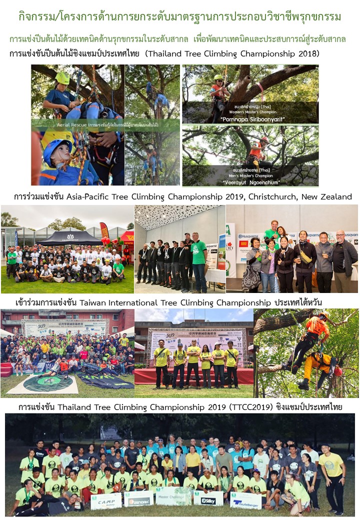 การแข่งปีนตามหลักรุกขกรรมโดยใช้กติกาและการตัดสินตามมาตรฐานสากลจากผู้เชี่ยวชาญนานาชาติ ซึ่งเป็นรุกขกรที่ขึ้นทะเบียนกับ International Society of Arboriculture (ISA) และมีประสบการณ์ยาวนานทั้งในด้านงานรุกขกรรม งานฝึกอบรม และการแข่งขันปีนต้นไม้ระดับนานาชาติ โดยจะมีการถ่ายทอดความรู้และทักษะให้แก่ผู้เข้าแข่งขันคนไทยที่มีประสบการณ์ในการทำงานและการฝึกอบรมรุกขกรรมมาก่อน ให้เข้าใจวิธีการและขั้นตอนของมาตรฐานนานาชาติ เพื่อให้ผู้เข้าร่วมการแข่งขันได้ยกระดับความรู้และทักษะของตนเองที่จะได้นำไปใช้ในการแข่งขันและนำไปต่อยอดฝึกอบรมผู้ปฏิบัติงานต่อไป