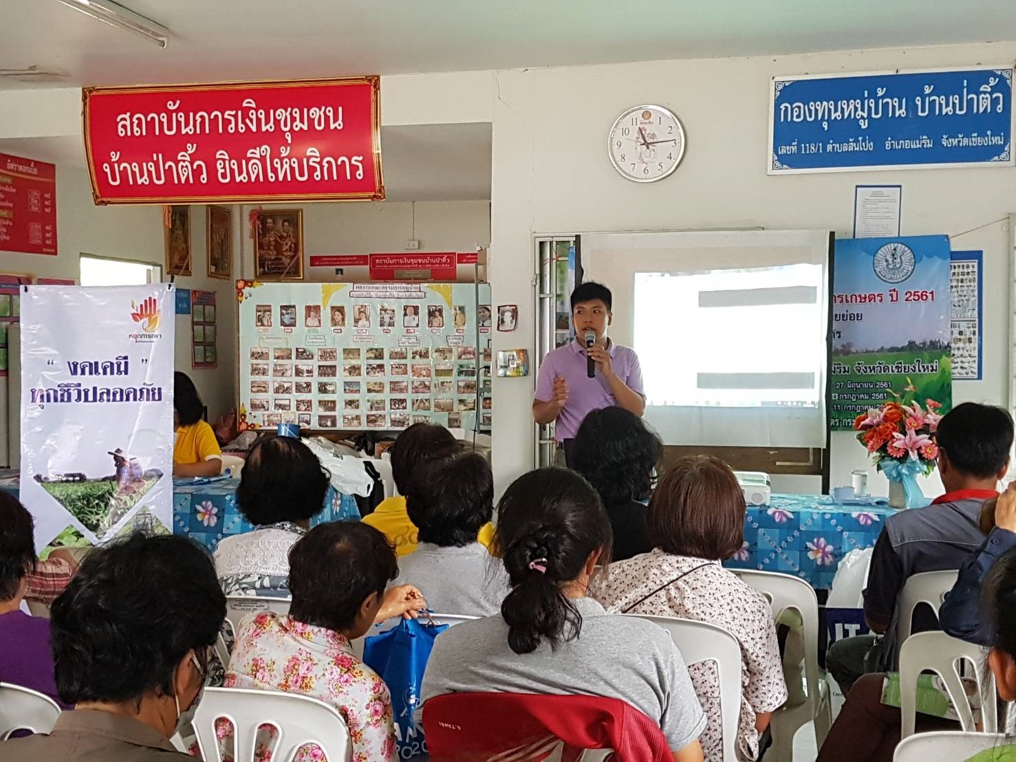 อบรมและประชาสัมพันธ์ภายใต้โครงการลดการเผาและลดใช้สารเคมีในพื้นที่การเกษตร แก่เกษตรกรในพื้นที่ อ.แม่ริม จ.เชียงใหม่ รวม 8 ตำบล ได้แก่ ต.ขี้เหล็ก, ต.สันโป่ง, ต.แม่สา-ริมใต้, ต.ริมเหนือ, ต.ห้วยทราย, ต.ดอนแก้ว, ต.แม่แรม และ ต.สะลวง
