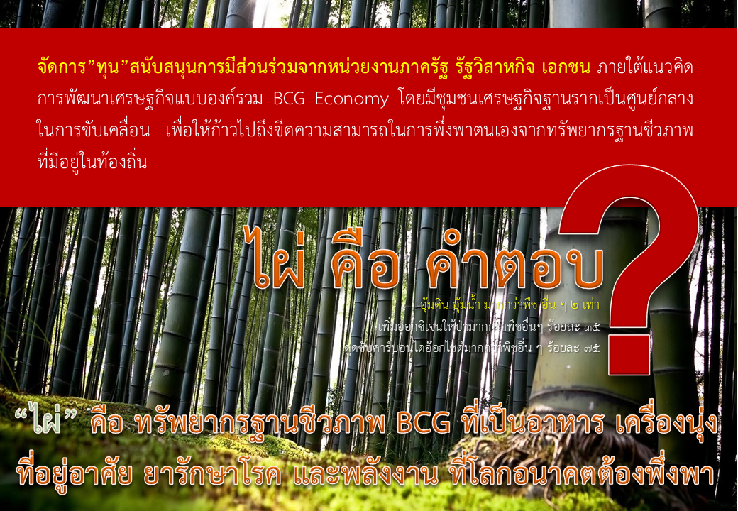 จัดการทุน "ทรัพยากร" ที่เหมาะสมเพื่อขับเคลื่อนการปรัปตัว รองรับการเปลี่ยนแปลงของสภาพอากาศ ที่คนผาปัง สามารถพึ่งตนเองได้ และสามารถพัฒนายกระดับก้าวไปให้ถึงขีดความสามารถในการแข่งขันที่โลกอนาคตต้องพึ่งพา "ไผ่" คือคำตอบนั้น