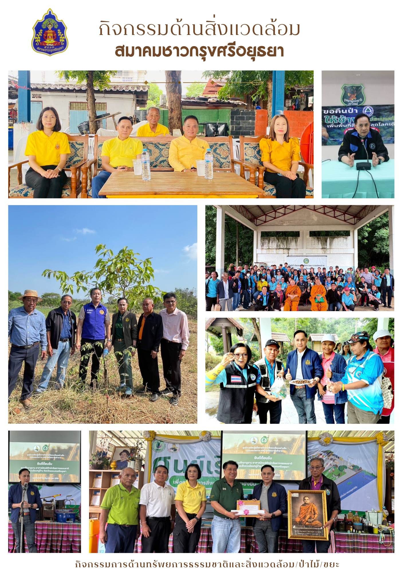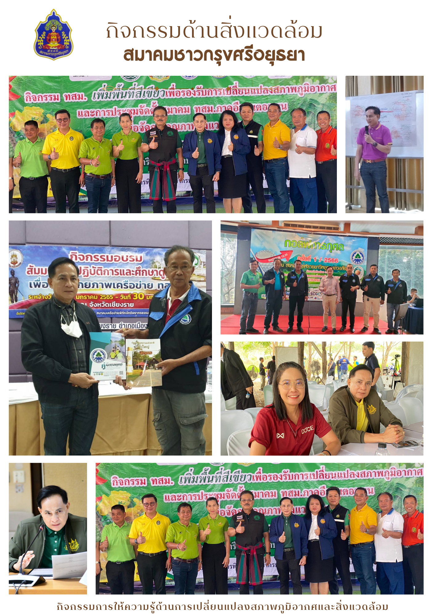สมาคมชาวกรุงศรีอยุธยาร่วมจัดกิจกรรมที่เน้นการให้ความรู้และการฝึกอบรมในประเด็นสำคัญด้านสิ่งแวดล้อม โดยเฉพาะอย่างยิ่งในหัวข้อการเปลี่ยนแปลงสภาพภูมิอากาศ (Climate Change) "กิจกรรม อบรม เพิ่มพื้นที่สีเขียวเพื่อรองรับการเปลี่ยนแปลงสภาพภูมิอากาศ" เพื่อสรา้งความมุ่งมั่น ในการสร้างความตระหนักรู้และส่งเสริมการมีส่วนร่วมของชุมชนในการรับมือกับปัญหาสิ่งแวดล้อมในปัจจุบัน