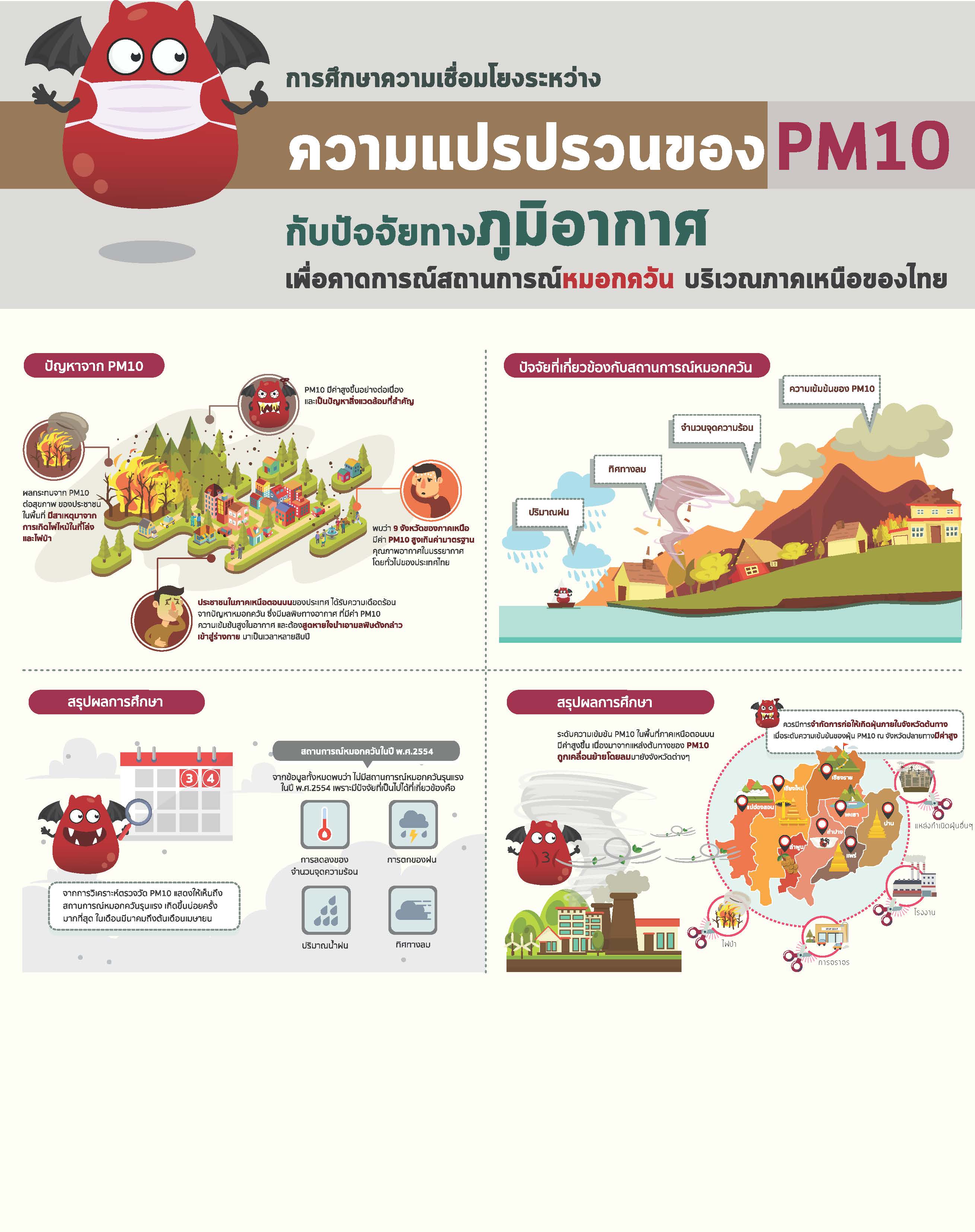 การศึกษาความเชื่อมโยงระหว่างความแปรปรวนของ PM10 กับปัจจัยทางภูมิอากาศ เพื่อคาดการณ์สถานการณ์หมอกควัน บริเวณภาคเหนือของไทย