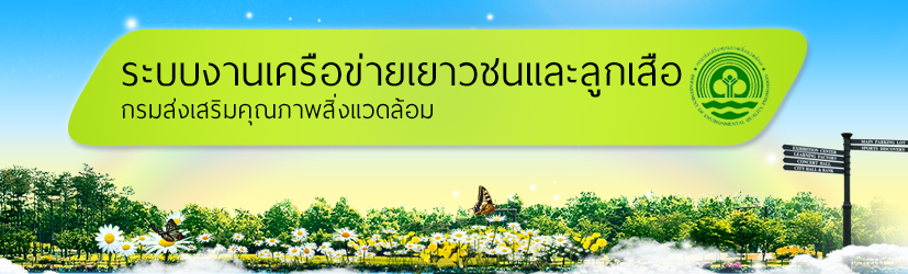 หน้าหลัก >> บริการออนไลน์ (e-services) >> ระบบงานเครือข่ายสิ่งแวดล้อม >> จำนวนผู้เข้าชม: 3,129 เครือข่ายเยาวชน