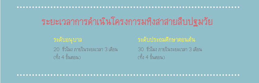 หน้าหลัก >> บริการออนไลน์ (e-services) >> ระบบมหิงสาสายสืบปฐมวัย >> จำนวนผู้เข้าชม: 2,547 ระยะเวลาการดำเนินโครงการและการประเมินผล