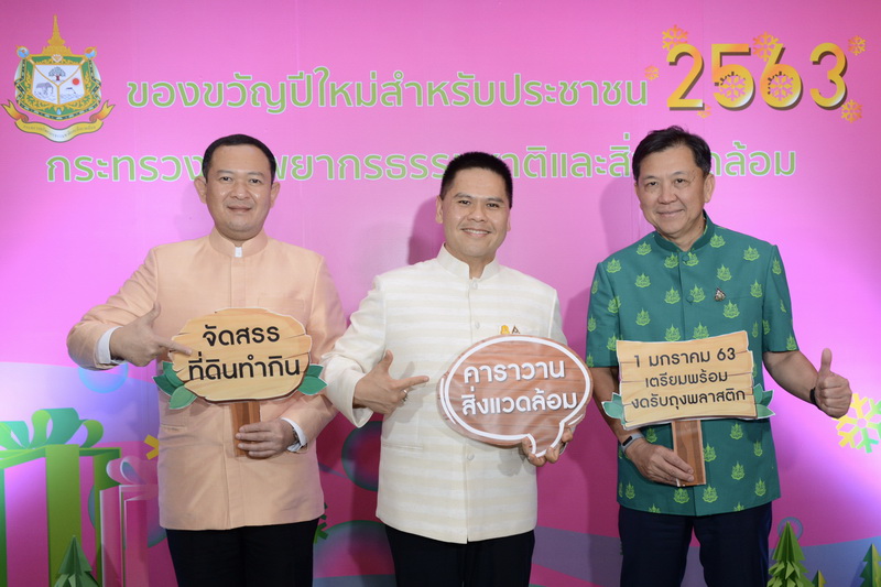วันนี้ (24 ธ.ค.2562) นายวราวุธ ศิลปอาชา รัฐมนตรีว่าการกระทรวงทรัพยากรธรรมชาติและสิ่งแวดล้อม แถลงข่าว “ของขวัญปีใหม่สำหรับประชาชน” ประจำปี พ.ศ. 2563 ณ ห้องประชุมอารีย์สัมพันธ์ กรมส่งเสริมคุณภาพสิ่งแวดล้อม ร่วมด้วย นายจตุพร บุรุษพัฒน์ ปลัดกระทรวงทรัพยากรธรรมชาติและสิ่งแวดล้อม นายรัชฎา สุริยกุล ณ อยุธยา อธิบดีกรมส่งเสริมคุณภาพสิ่งแวดล้อม คณะที่ปรึกษาและผู้บริหารกระทรวงทรัพยากรธรรมชาติและสิ่งแวดล้อม โดยมอบของขวัญปีใหม่ให้กับพี่น้องคนไทย ทั้งช่วง 7 วันเทศกาลและตลอดปี 2563 ดังนี้